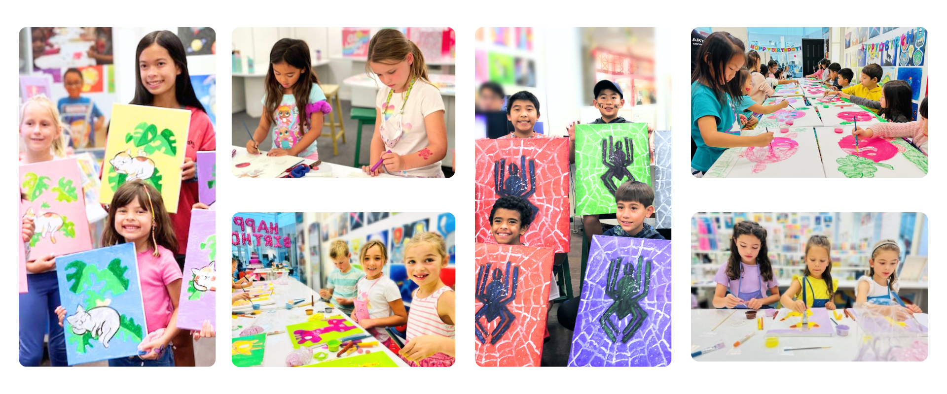 While we do not host food or cake/treats at our Valley Fair studio, you can take advantage of our partnership with CPK and  reserve their patio (and a dedicated server) for your group. CPK also extends a 10% discount on your order when you let them know you’ve booked a party with Young Art. This private dining experience is a popular choice among our guests. You may also store a cake in their commercial-grade fridge/ freezer upon request. Indicate in your booking that you would like to reserve CPK’s patio and our team will take care of coordinating the reservation on your behalf. Contact CPK via TEXT for any questions related to their space at 669-225-1362.